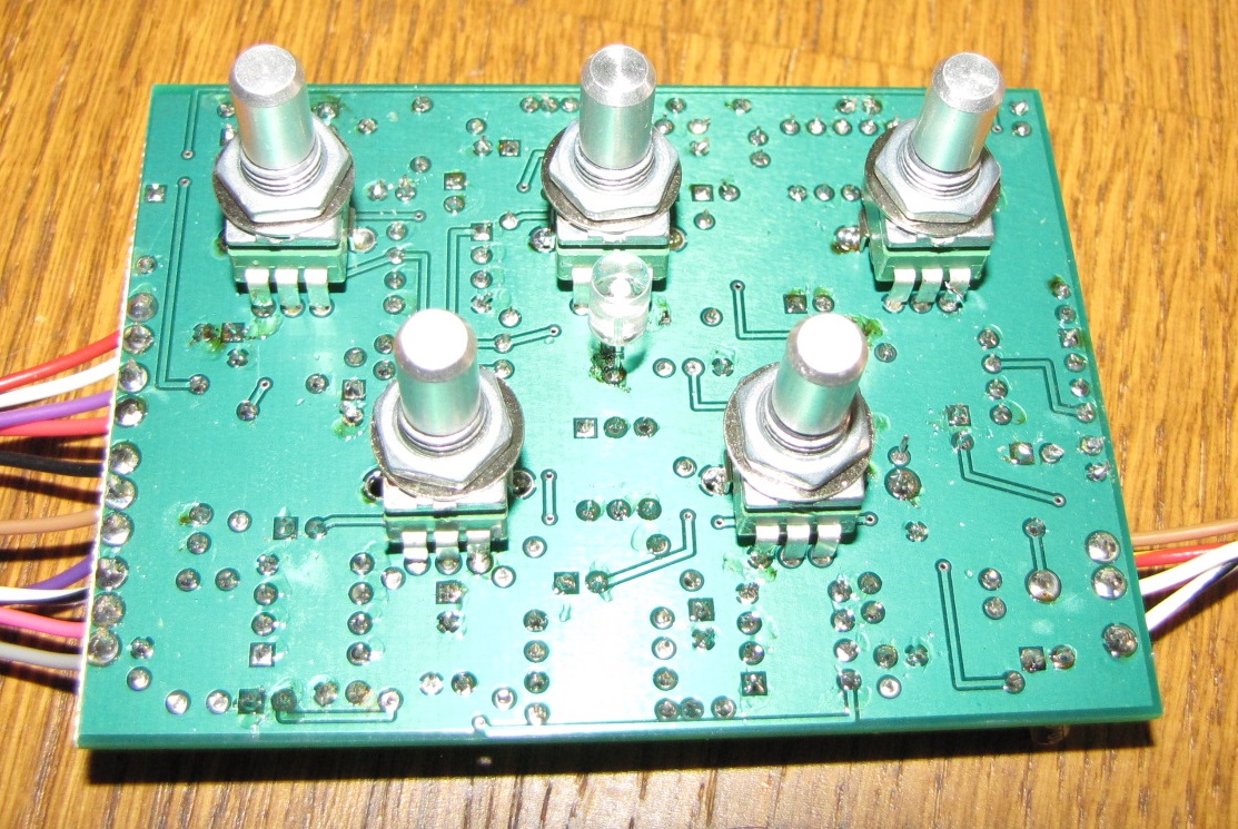 PC Board PIC: This is a homebrew board, created using laser printer toner transfer and sponge/ferric chloride etching.