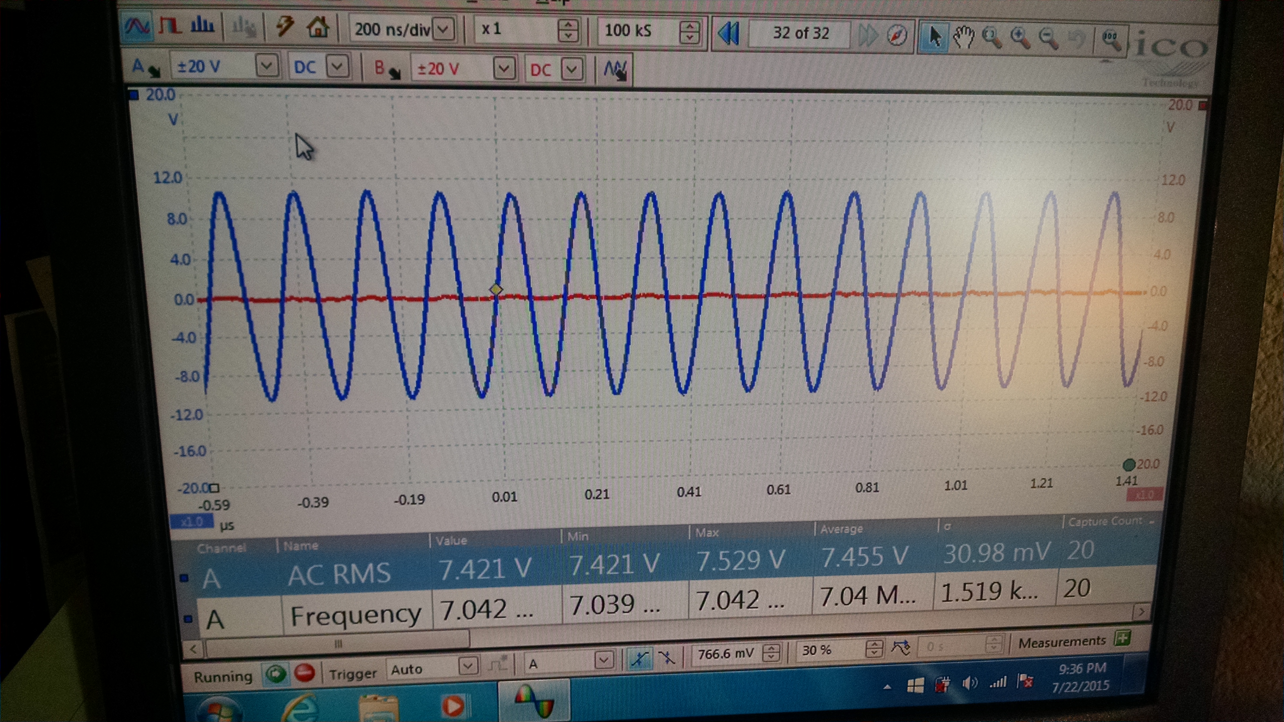 I am building a little QRP rig for the 40 meter band , utilizing one of my DC receiver designs. I am using a CS2000 clk generator for the receiver and can use the clock output to drive a 1 watt or so RF amp for the TX. I am prototyping the transceiver now and will post that design when it’s done. I designed a nice class E final at about two watts but it was tricky to test and tune…etc- so I thought I would come up with an amplifier that was easier to duplicate by other builders. This amplifier works well and is easy to build. It puts out in excess of one watt from a single 74AC240 (the 74HC240 will also work but not put out as quite as much power). You can also use a couple of 74AC04’s also. The 240 is convenient however, because it has an enable pin for keying when using CW. The circuit uses two sets of four inverters driven by a couple more inverters( to create differential inputs) and either a balanced L network(followed by a balanced to single ended combiner transformer) or a LC tuned balun to match the output to a 50 ohm load. The schematic shows both methods and values for 7 Mhz. I have created a spreadsheet for calculating networks for any band desired. The inverters have very low impedance and so you need to match roughly 4 ohms at the inverters to 25 ohms for each side of the push pull sets. You need to heatsink the inverter IC’s! I used a small heatsink for IC’s (seen on top of the 74AC240 TSSOP package) but you can use a piece of bent aluminum – or copper, etc. Because of the low Z, all of the matching inductors are small – so you can easily fabricate your own small air wound coils or coils wrapped on scraps of ferrite from junk inductors- you don’t need to have specialized toroid cores.