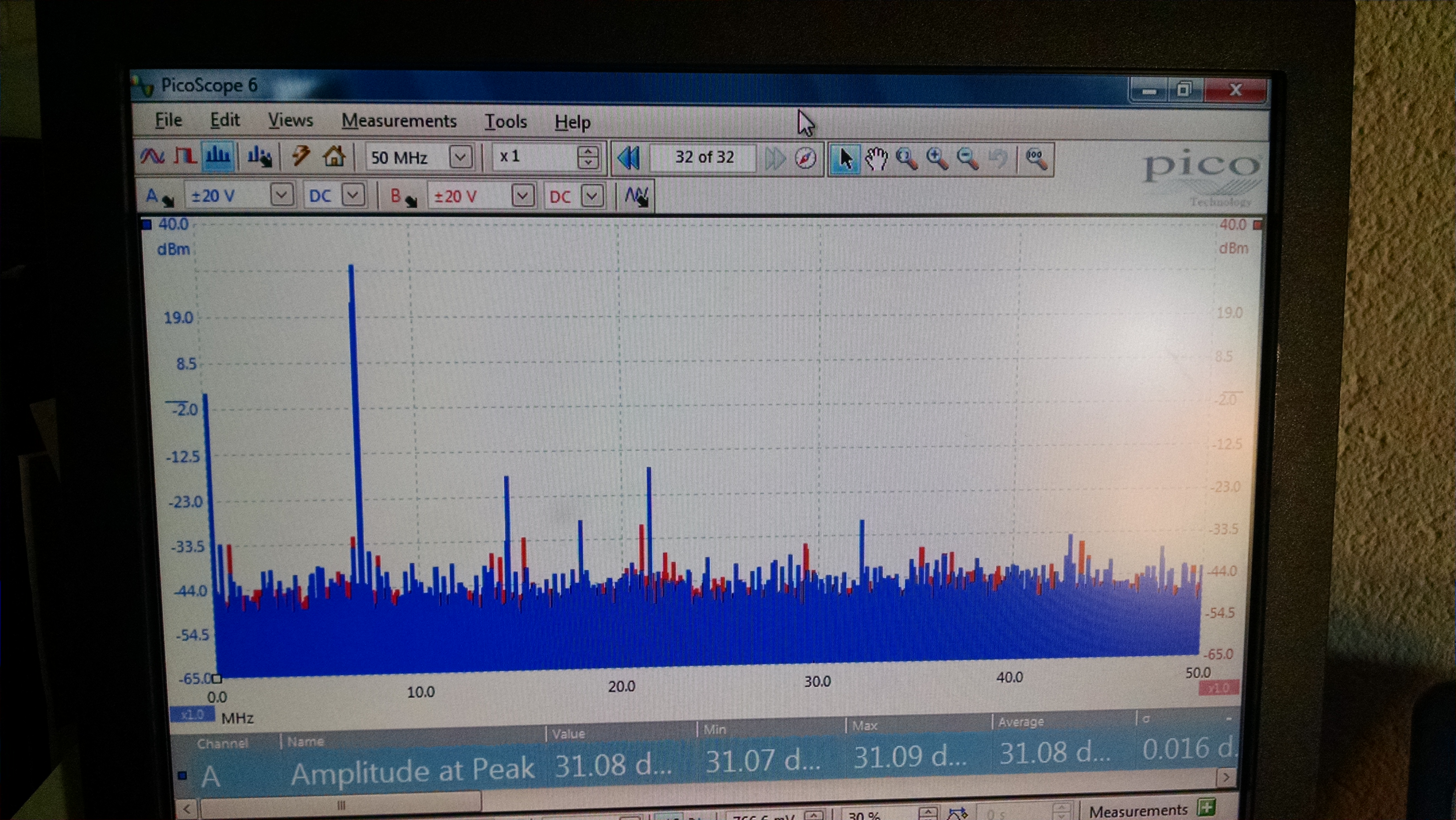 Just over 1 Watt 2nd and 3rd harmonic down 37 dB with LC Balun
