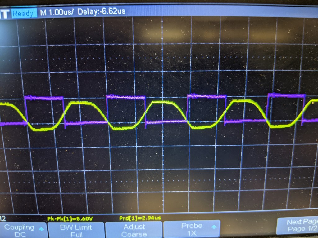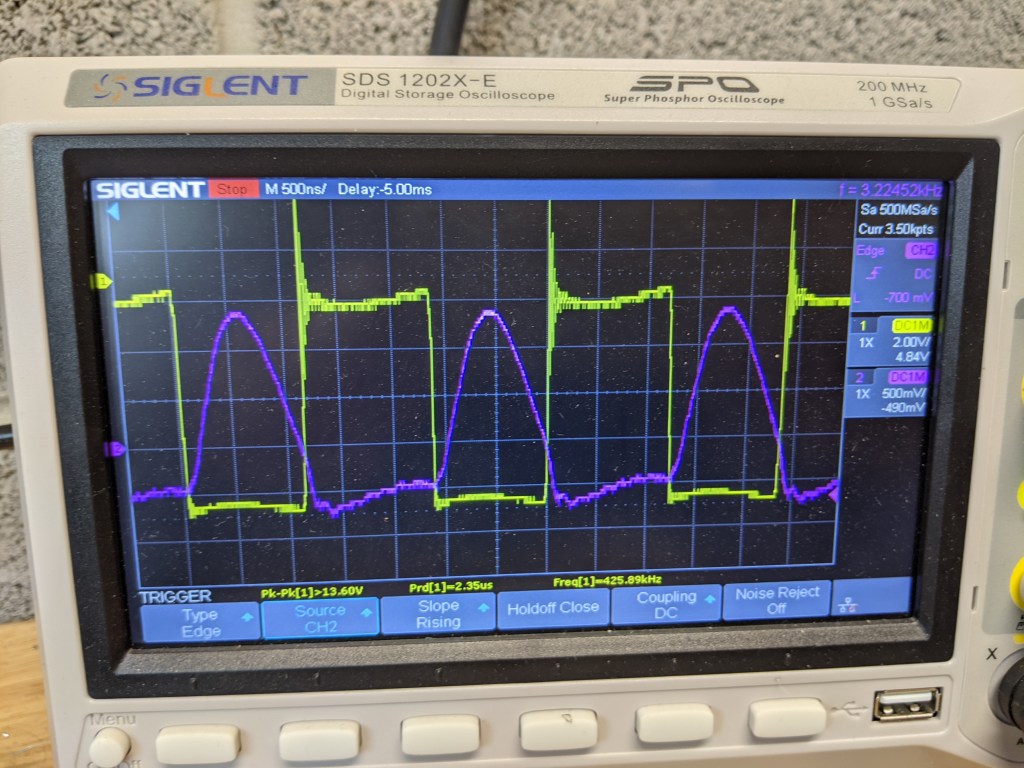 Output switch waveform as seen from drain of mosfets(very little ringing)