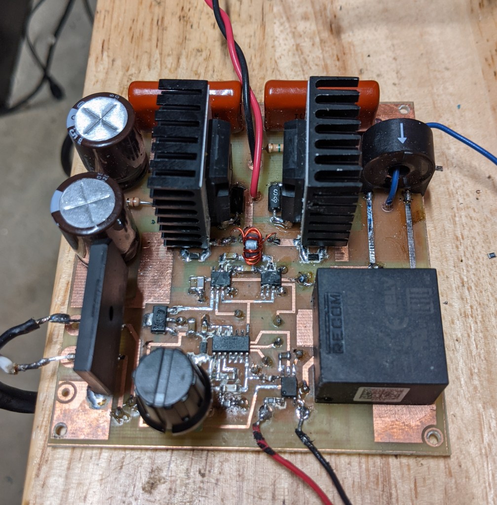 Choice of mosfet: I wanted to select a low cost and high performance mosfet for the circuit. There are two I found that work well. The basic criteria are : > 250V breakdown rating @ > 20 amp current capacity. Low output capacitance, gate capacitance and on resistance were also important. The IRFP4229 is the ideal candidate. It has a breakdown of 250V. It can handle 40 amps of current, and has total switch delay of of 100ns(very fast). The on resistance is .04 ohm; so IR losses are low. A similar device, only slightly slower and with a slightly greater on resistance is the STW46NF30. Both were evaluated and worked well. The cost of both of these mosfets is around $3 each.