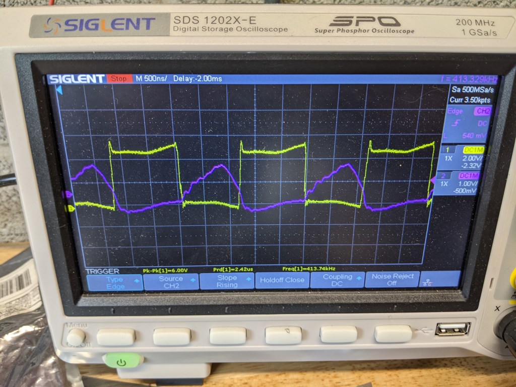 I decided to try using IGBT’s in my optimized half bridge Tesla Coil driver circuit. The results were good but the IGBT’s did have more heating than the very low RDS on mosfets such as the IRFP4229. I was able to phase shift the drive feedback such that zero crossing switching was achieved, but the Collector to Emitter voltage of approximately 1 volt @ 10 amp current produces 10 watts of dissipation, whereas the IRFP4229 RDS of. 04 ohm yields only 4 watts of dissipation @ 10 amps. So for a low power coil the FET is a better performer. At much larger currents, the IR dissipation the Mosfet grows exponentially, so in DRSSTC designs the IGBT would be a better choice as its dissipation grows linearly. My test coil operates at nearly 400KHz. This is a very high frequency for IGBT’s. The main issue with IGBTs is that they are slow to turn off when driven to saturation(switching). I chose the STGW35HF60W 600V, 35 amp ultra fast IGBT for my experiments. It is optimized to minimize turn off delay and residual tail current. It worked well at this frequency but the price you pay is a higher Collector to Emitter saturation voltage than you get with slower IGBTs. So again this is a trade off. Over all these IGBTs work well in the circuit and while they do get warmer than the Mosfets, they do not overheat with the small heat sinks and switching losses are low. They seem tolerant of abuse and I have not blown any up yet!